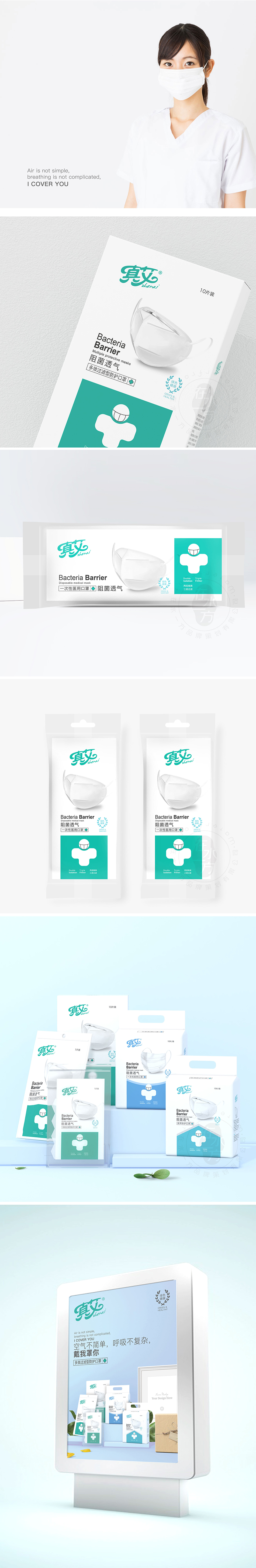 服務方案:基于衛(wèi)生用品行業(yè)特征,尤其是口罩品類的產品屬性,真艾以獨特的產品視覺符號,通過有效的設計將醫(yī)學專業(yè)感予以呈現(xiàn),形成專屬于品牌產品的視覺系統(tǒng),從細節(jié)雕琢上完成產品區(qū)分及品質感的締造。