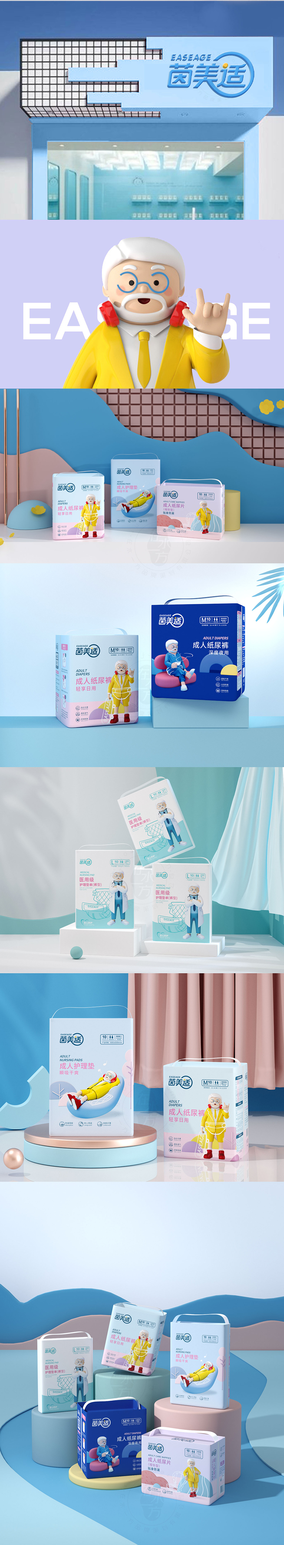 服務(wù)方案:我們將“茵美適”定義為新時代下成人失禁護理模式革新者,倡導給老人嬰兒級的舒適護理,如孩子般無負擔、年輕態(tài)的生活方式。通過品牌建設(shè)和視覺輸出,塑造具有品牌特色的形象體系。引入原創(chuàng)3D技術(shù)制作品牌IP,展現(xiàn)獨具一格的品牌特征和精神面貌。