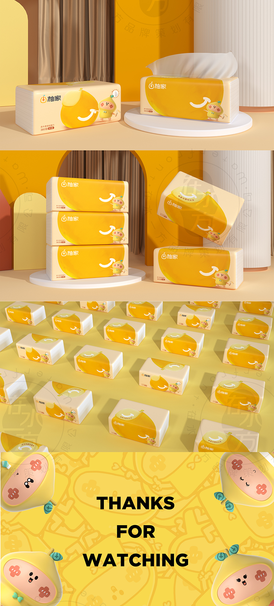 服務(wù)方案:進入2.0時代的柚家,擁有更為明確的品牌定位路線,以迎合精致家居消費為導向,全力推出一系列符合新消費市場的優(yōu)質(zhì)紙品。放大“家”的概念,引進柚子家族IP形象詮釋品牌對潔居生活的理解,用更為時尚有趣的方式展現(xiàn)健康品質(zhì),有助于品牌順利出圈。