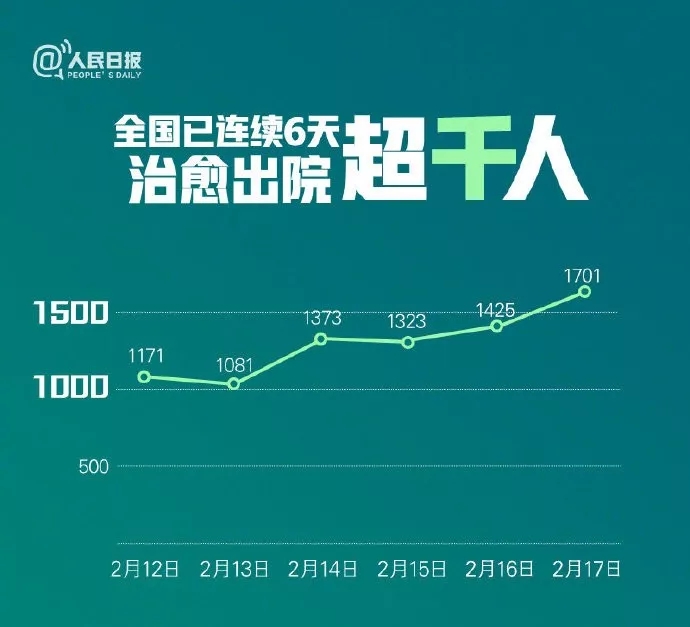 拐點不好判斷,但情況是在好轉。全國連續(xù)6天治愈出院人數(shù)突破千人大關。