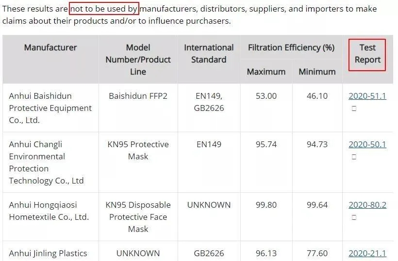 熱點(diǎn)一:CDC列出最新100+中國口罩企業(yè)檢測(cè)結(jié)果