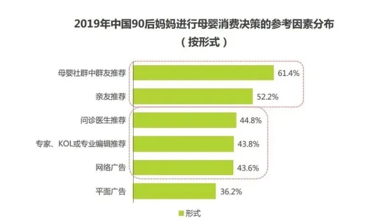 在認知-消費-決策的思考環(huán)節(jié)中,65.3%的90后小城新媽信賴專業(yè)人士背書,會受到專家、KOL、專業(yè)編輯等知識型內(nèi)容推薦吸引而進行購買