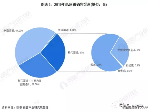 但是對于中國紙尿褲品牌,無論是市場層級提升或下沉,都需要在渠道中有符合自身發(fā)展的定位。隨著互聯(lián)網(wǎng)、5G、人工智能等技術的發(fā)展,電商渠道、新興渠道逐漸占據(jù)主要銷售渠道。據(jù)歐睿數(shù)據(jù),2019年紙尿褲銷售渠道中,電商渠道占比44%;新興渠道主要為母嬰渠道占比28%。.jpg)