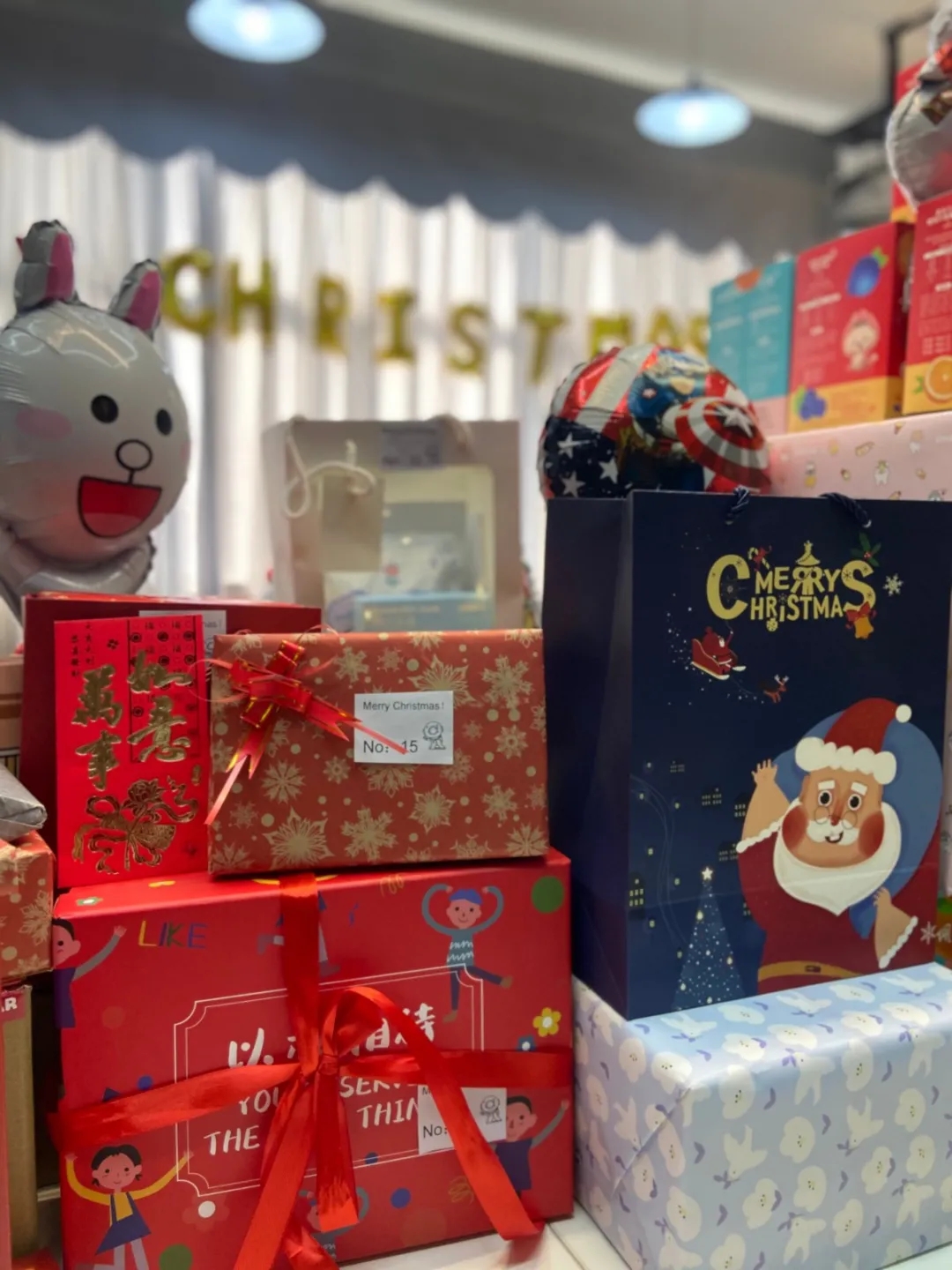 喏,臺(tái)上滿(mǎn)滿(mǎn)當(dāng)當(dāng)?shù)木?,大的小的,紅的綠的,還有會(huì)發(fā)光的,禮應(yīng)如此!