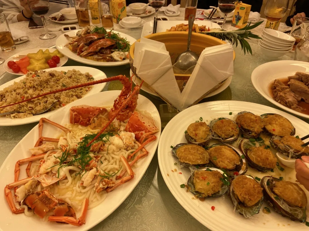 晚上安排的尾牙宴,一桌桌豐盛的硬菜,還有杯盞交錯著同事間的情誼!