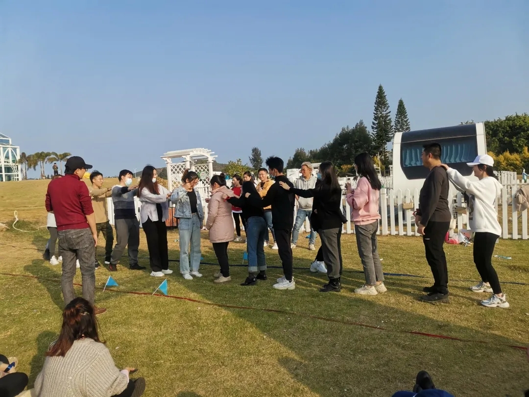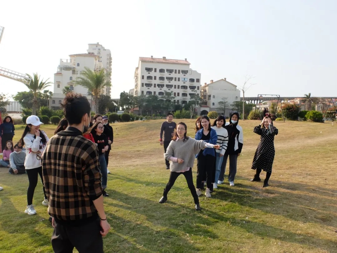 之后,就是集體活動時段。藍(lán)天和青草坪,延續(xù)著遙遠(yuǎn)世界的風(fēng)景,此刻也聚集了所有的一方小伙伴。小伙伴們提前被劃分成四組,開始了斗智斗勇斗歡樂的環(huán)節(jié)。趣味指令、你比我猜和猜拳對擂賽依次進(jìn)行,留下了一個個矯健的身影。草坪上回旋的是小伙伴們歡悅的笑聲,還有主持人耐心維持秩序的大嗓門。無辜的勝負(fù)欲,成了大家一致的情緒。幾輪游戲下來,還不熟絡(luò)的新同事已然走近彼此,有梗的,有趣的,有思想的,都是一方家人。